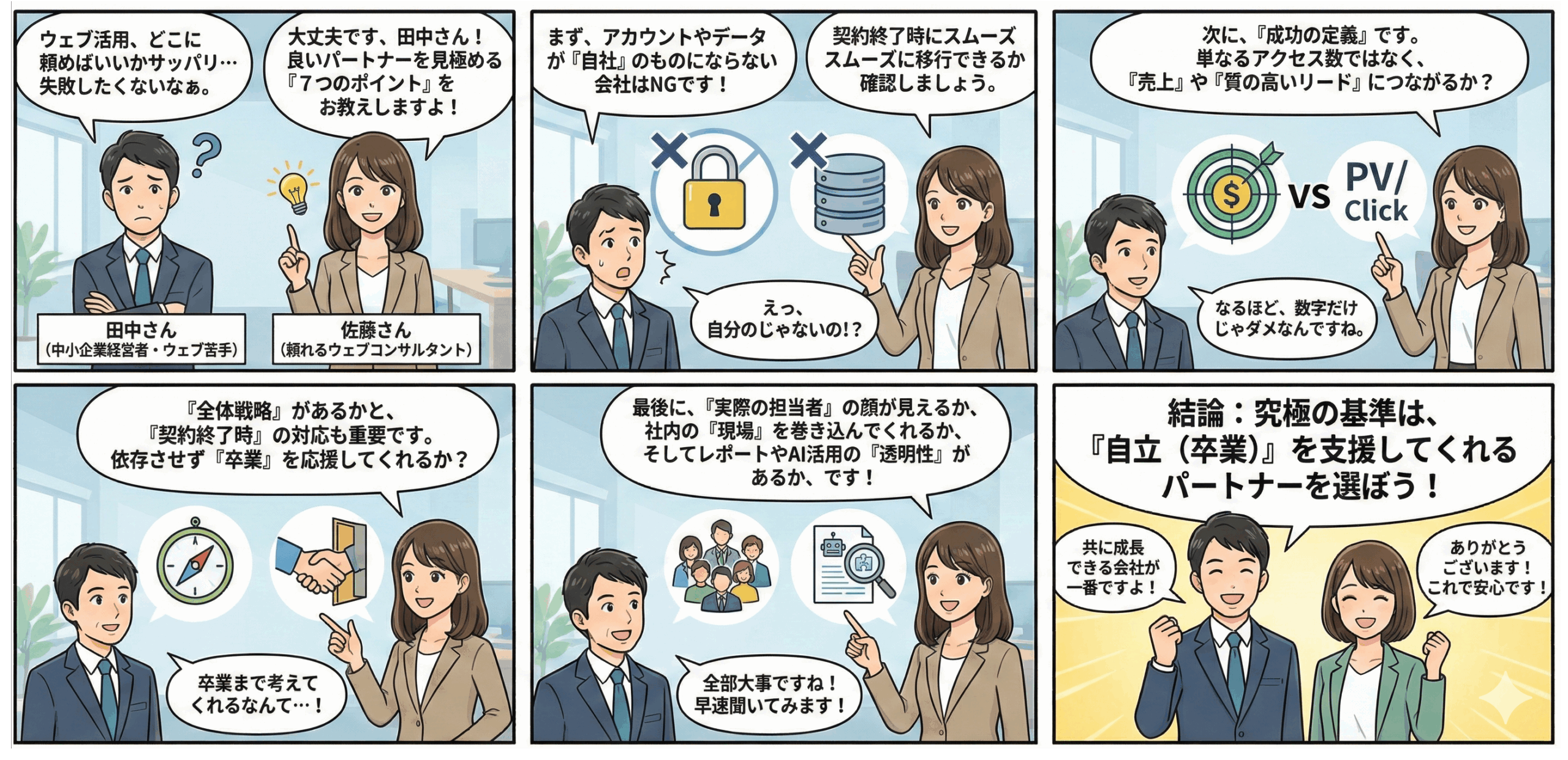 もし端的に一つだけ挙げるとすれば、「クライアントの卒業を応援してくれる会社」が良いパートナーだと思います。