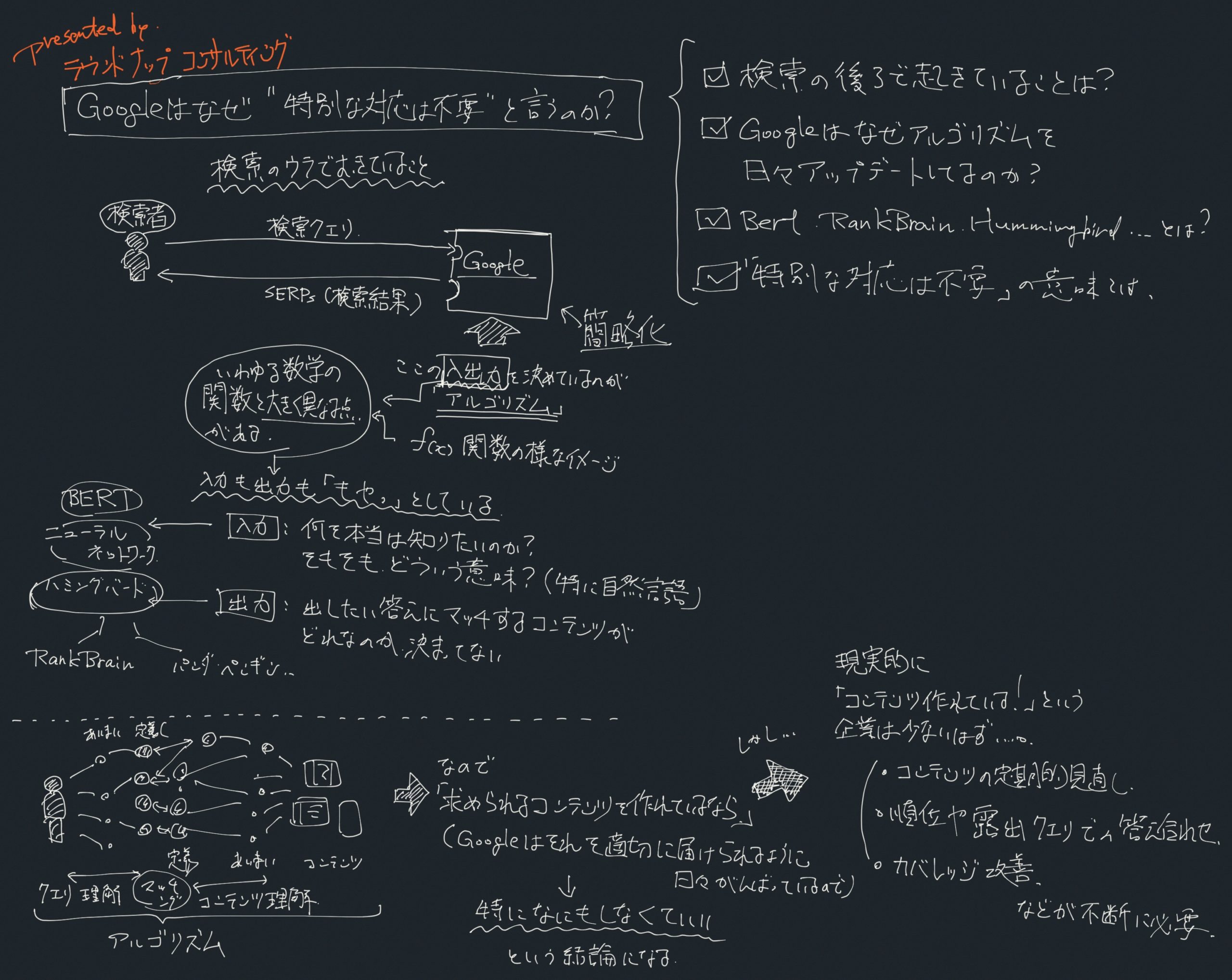 今回は、少々テクニカルなないようになりますが、ブラックボードを使いながら、検索の裏側なども含めてお伝えしています。